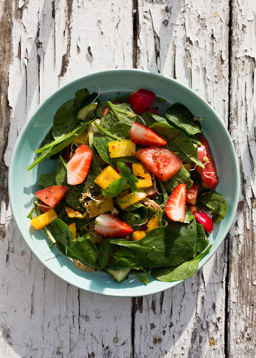 lucerny, trawa z pszenicy. Warzywa i owoce można jeść na surowo, w postaci surówek, zup warzywnych przyprawianych